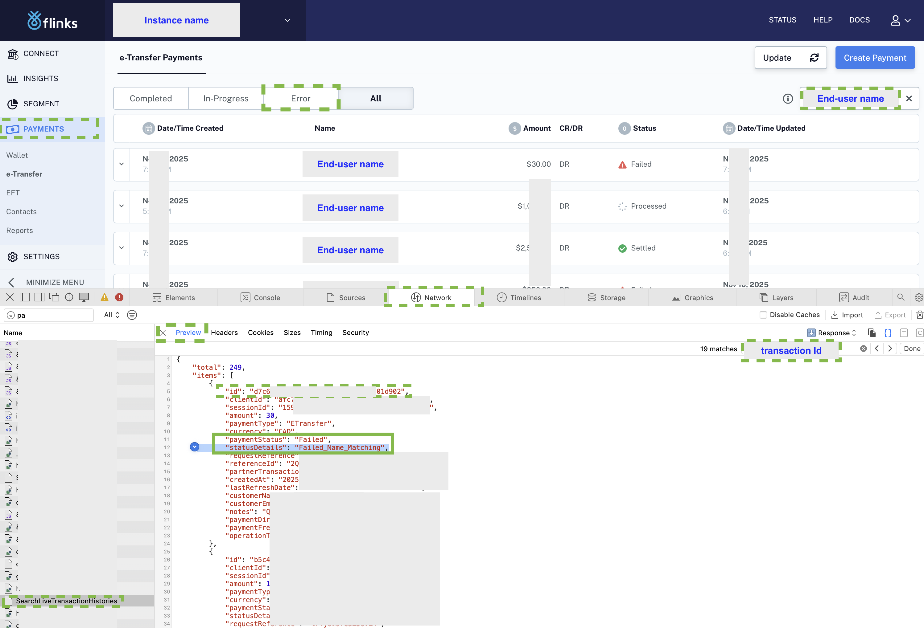 - The Network tab will add logs, including two SearchLiveTransactionHistories requests. Select the second one